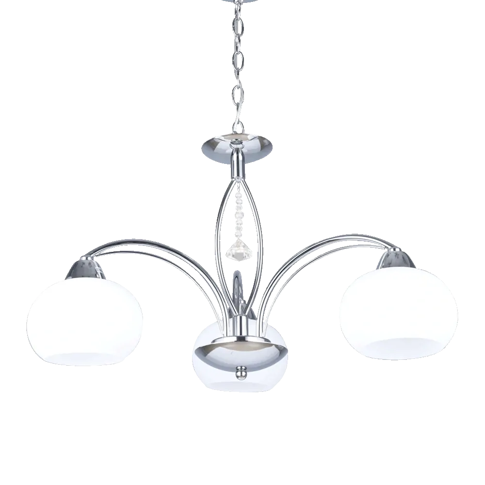 Závěsné svítidlo, kov chrom, bílé sklo, DxŠxV: 630x550x550 mm, dodání bez žárovek 3xE27/60W, 230V-.