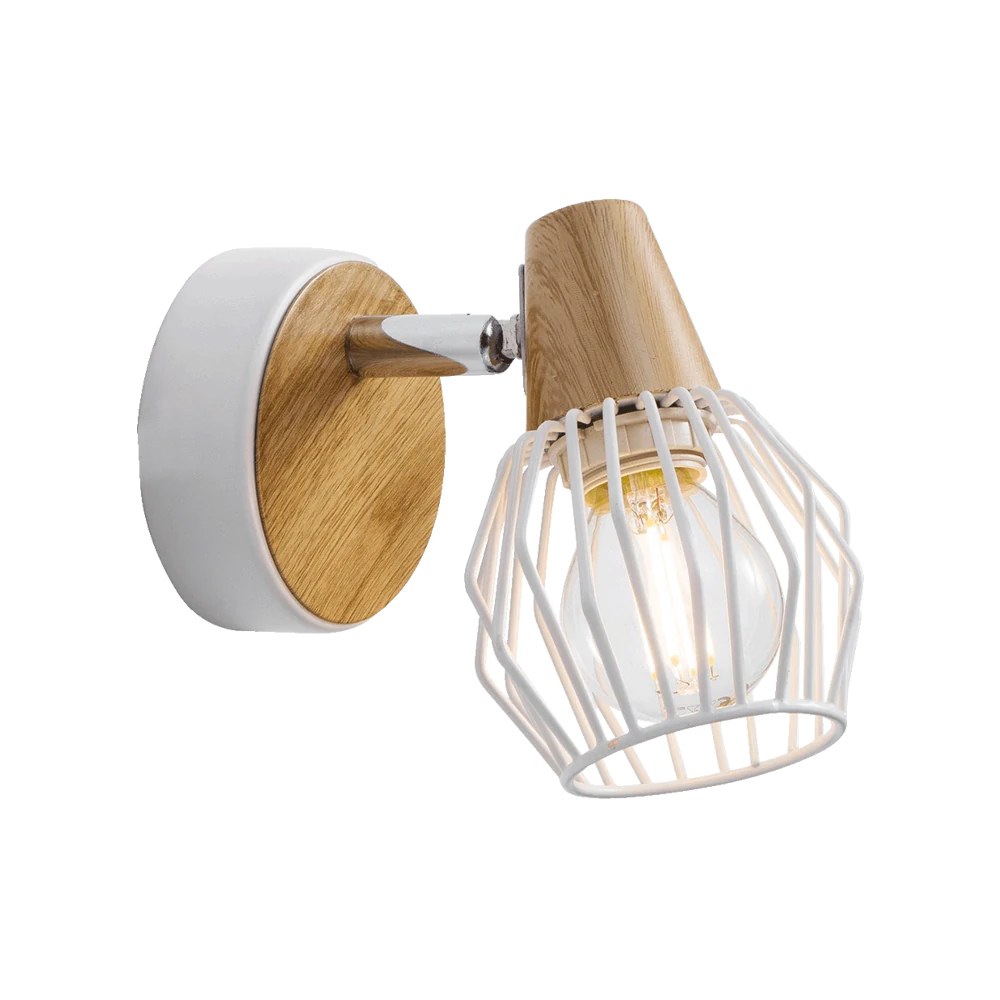 Nástěnné svítidlo, kov, bílá, světlé dřevo, DxŠxV:80x140x120mm, bez žárovek 1xE14, max. 40W 230V.